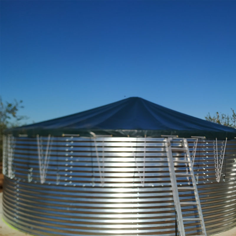 Otra solución para estructuras de almacenamiento de aguas que ofrecemos es la construcción de depósitos de chapa galvanizada ondulada con lámina interior impermeabilizante de PVC. Aunque la relación de coste por m3 de almacenaje es superior a las balsas, es una alternativa cuando el cliente dispone de poco espacio, además de un procedimiento de legalización más sencillo al ser obras desmontables. Se pueden plantear muchas soluciones constructivas según las necesidades del cliente (con cubierta, sistemas de bridas para diversas conexiones y utilidades, rehabilitación de depósitos anteriores sin lámina de PVC, etc.).